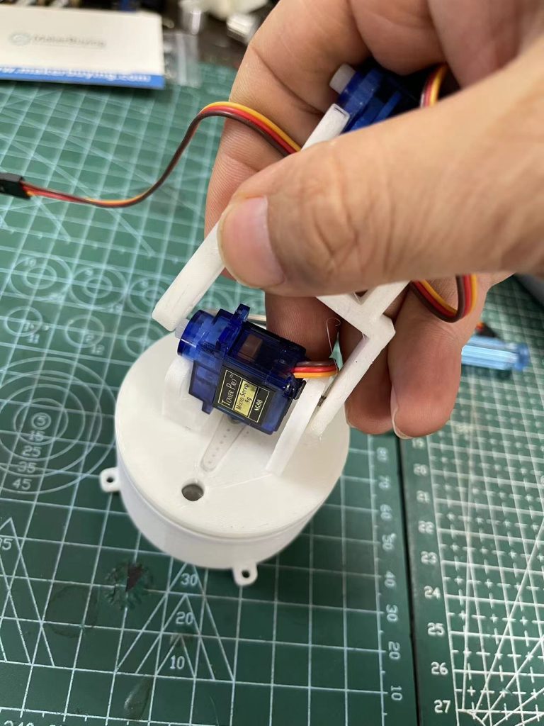 1.安装底座舵机,把舵机插入底座