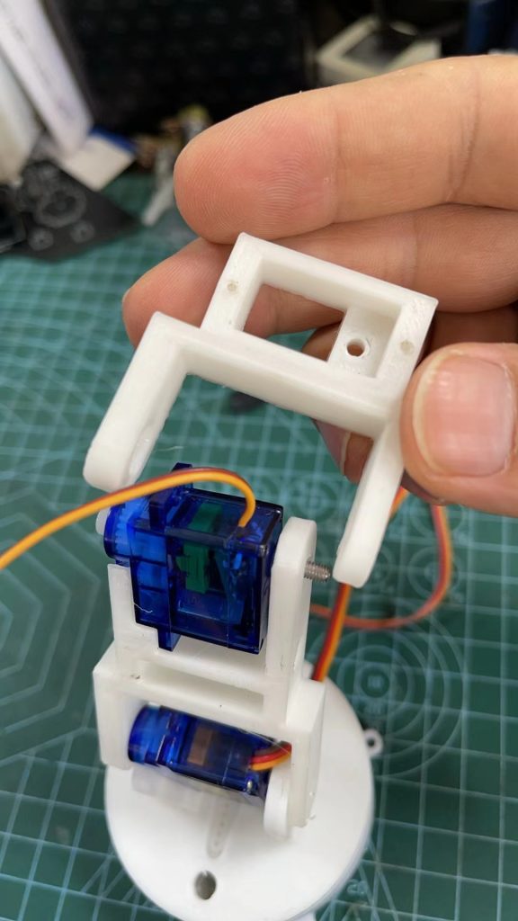 5.安装小臂舵机,先装舵机屁股后的螺丝
