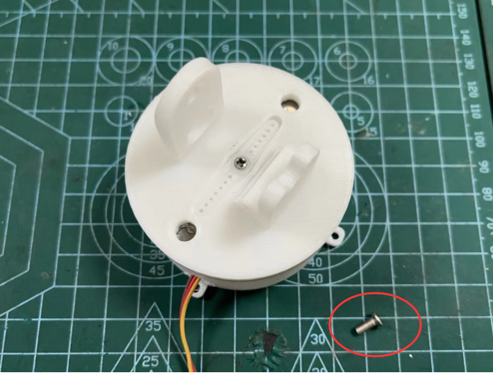 4.安装大臂舵机,先安装舵机背面的螺丝,塞进去
