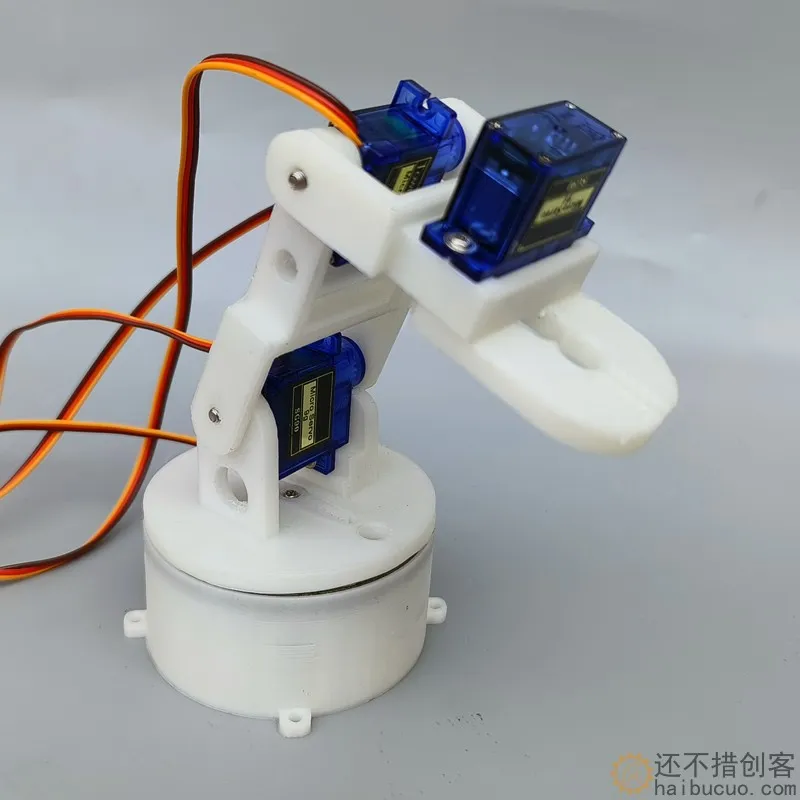 将四个舵机全部插在对应的接口上爪子————-舵机1大臂————-舵机2小臂————-舵机3底座————-舵机4